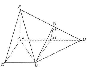 Cho hình chóp \(S.ABCD\) có \(SA\) vuông góc với mặt phẳng \(\left( {ABCD} \right)\) và \(a\sqrt 2 \). \(ABCD\) là hình thang vuông tại \(A\) và \(D\) với \(AB = 2a,\,\,AD = DC = a\). Góc giữa \(\left( {\left( {SBC} \right),\left( {SAB} \right)} \right)\) bằng bao nhiêu?