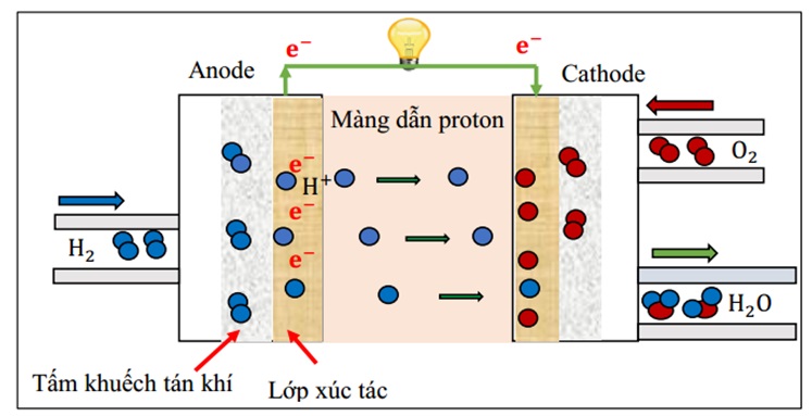 Dựa vào cấu tạo của pin nhiên liệu hydrogen.