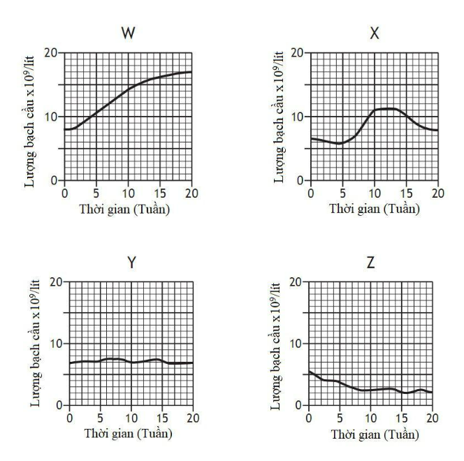 Các biểu đồ sau đây cho thấy số lượng bạch cầu của bốn bệnh nhân trong 20 tuần.