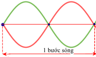 | c) Khi có sóng dừng trên một sợi dây đàn hồi, khoảng cách giữa ba nút liên tiếp bằng một bước sóng. | ||