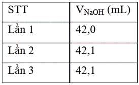 Thể tích dung dịch NaOH 0,1 M đã dùng được ghi lại như sau: