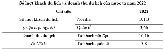 Căn cứ vào bảng số liệu, cho biết năm trong năm 2022, bình quân một lượt khách du lịch nội địa chi tiêu bao nhiêu USD (làm tròn kết quả đến hàng đơn vị).