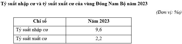 Cho bảng số liệu: Gia tăng cơ học của vùng Đông Nam Bộ năm 2023 là bao nhiêu