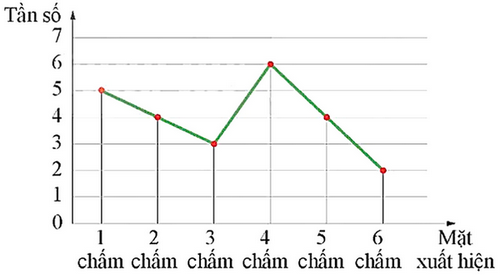 Người ta gieo một con xúc xắc được các chấm xuất hiện và biểu diễn được trong biểu đồ dưới: