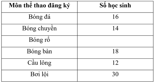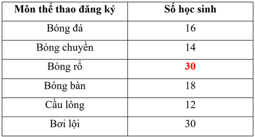 b) Môn thể thao nào được nhiều học sinh đăng ký nhất?