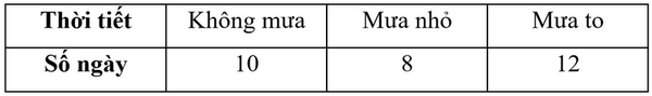 Theo dõi thời tiết tại một điểm du lịch trong 30 ngày người ta thu được bảng sau: