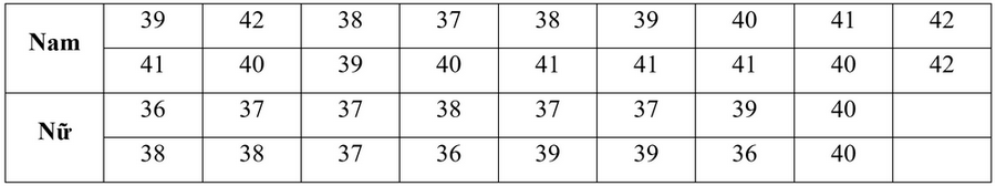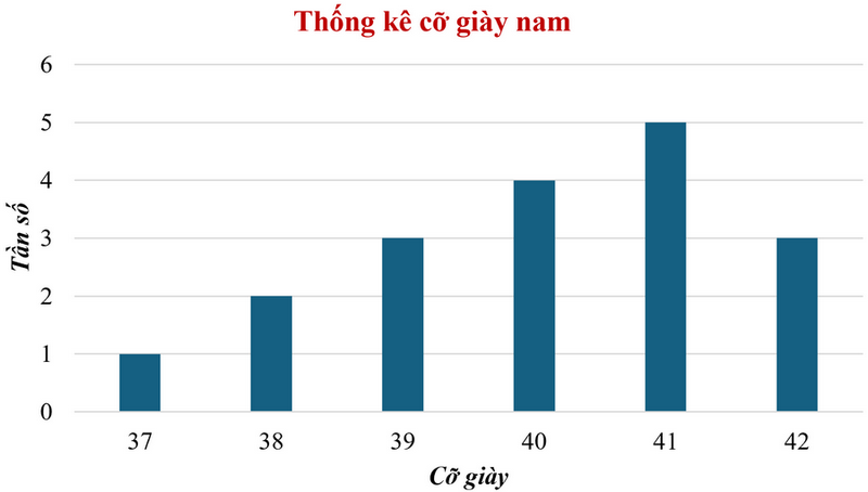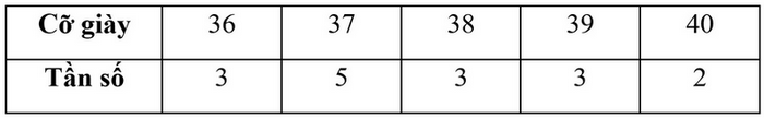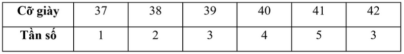Lớp trưởng Đồng Minh Anh đã tiến hành khảo sát cỡ giày của các bạn trong lớp và đây là kết quả sau khi thu thập: