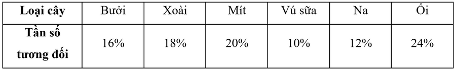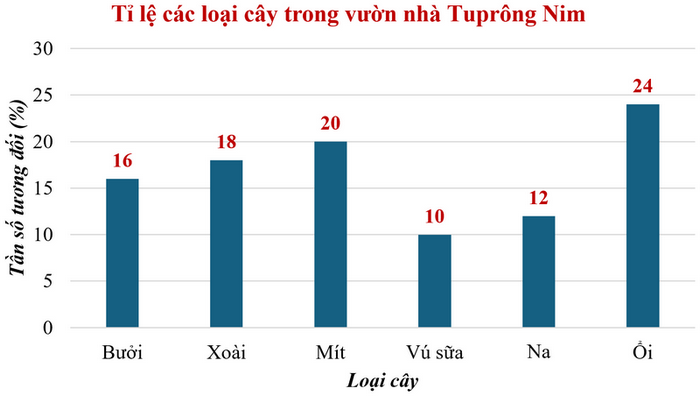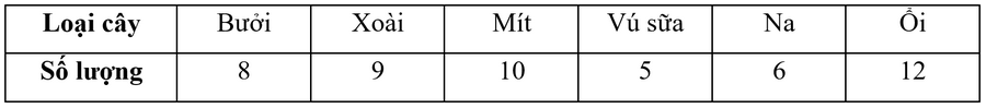 Tuprông Nim (dân tộc k’Ho) đã thống kê số cây trong vườn nhà theo bảng dưới đây: