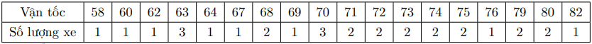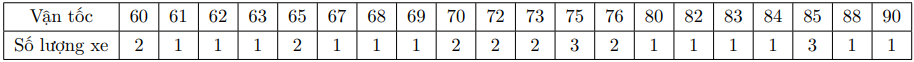 Trên hai con đường A và B, trạm kiểm soát đã ghi lại tốc độ \((\mathrm{km} / \mathrm{h})\) của 30 chiếc ô tô trên mỗi con đường như sau: