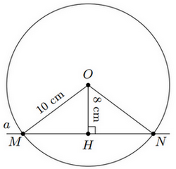 b) Gọi \(M\) và \(N\) là các giao điểm của đường thẳng \(a\) và đường tròn \(\left( {O;10\;cm} \right)\). Tính độ dài của dây \(MN\).