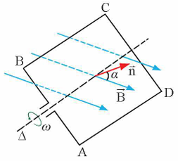 Sử dụng thông tin sau cho Câu 10 và Câu 11: Một khung dây dẫn phẳng có N vòng, diện tích mỗi vòng là S, có thể quay đều với tần số góc \(\omega \) quanh trục \(\Delta \) như hình vẽ. Biết tại thời điểm t = 0 thì góc \(\alpha = {0^0}\) và khung dây được nối với điện trở R thành mạch kín.