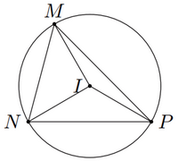Cho tam giác \(MNP\) có ba đỉnh nằm trên đường tròn \(\left( I \right)\). Góc nào dưới đây