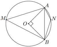 Cho đường tròn \(\left( {O;R} \right)\) và dây \(AB\) sao cho \(\angle {AOB} = {90^0}\). Giả sử \(M,N\) lần lượt là các điểm thuộc cung lớn \(AB\) và cung nhỏ \(AB\,\,(M,N\) khác \(A\) và \(B)\).