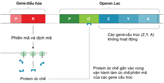 Trong môi trường không chứa lactose thì protein ức chế gắn vào vùng vận hành và ngăn cản không cho quá trình phiên mã diễn ra.