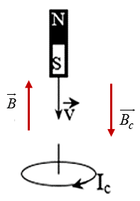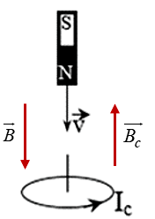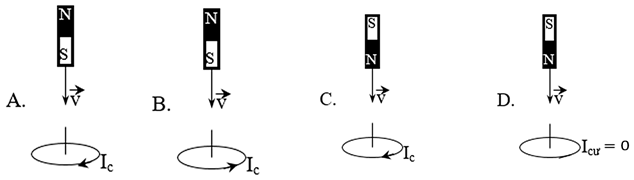 Hình vẽ nào sau đây xác định đúng chiều dòng điện cảm ứng khi cho nam châm rơi thẳng đứng