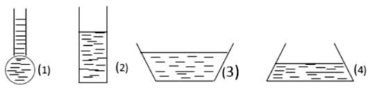 Bốn bình 1, 2, 3, 4 cùng đựng nước như dưới. Áp suất của nước lên đáy bình nào lớn nhất?