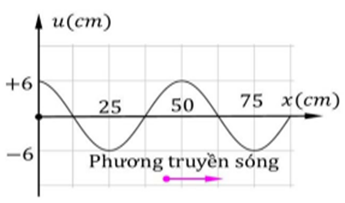 Một sóng hình sin được mô tả như hình bên. Sóng này có bước sóng bằng bao nhiêu cm?