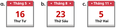 Điền vào chỗ chấm: a. Hôm nay là …………….ngày………..tháng 5 b. Ngày mai là