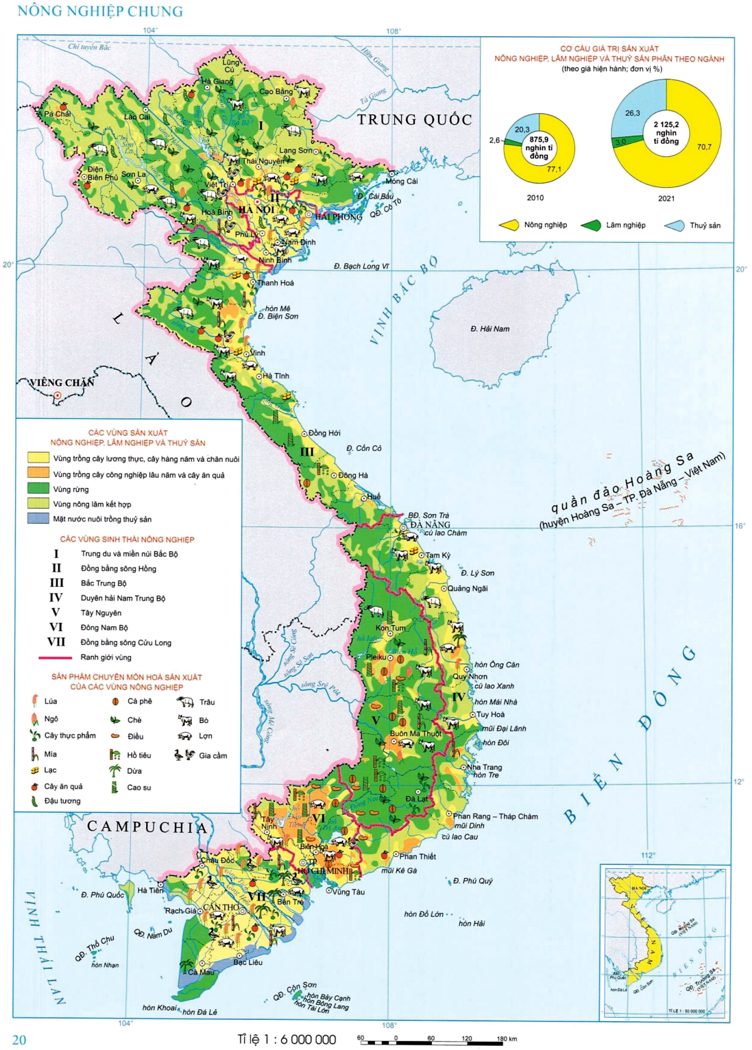 Dựa vào bản đồ và lí thuyết về Vấn đề phát triển Nông nghiệp, lâm nghiệp và thủy sản.