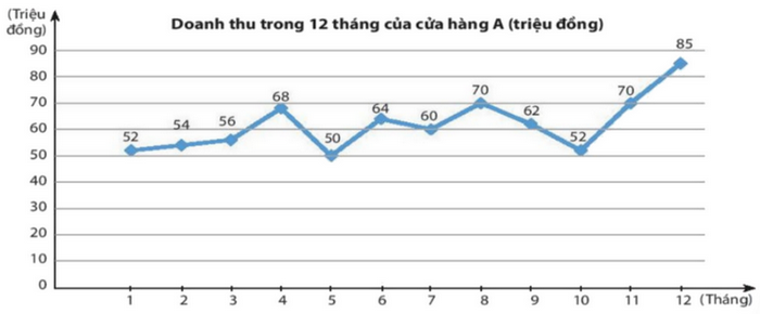 Biểu đồ doanh thu trong 12 tháng của hàng A là biểu đồ