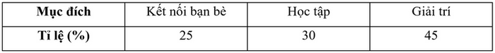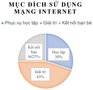 Kết quả khảo sát về mục đích vào mạng sử dụng internet của các học sinh truờng A được cho bằng biểu đồ dưới đây: