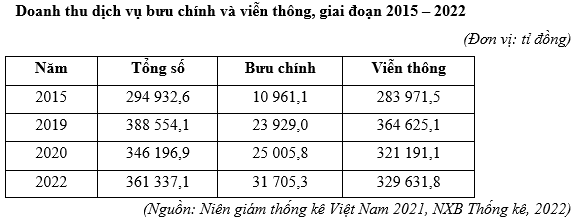 Cho bảng số liệu:Dựa vào bảng số liệu , nhận xét nào sau đây đúng với ngành bưu chính và