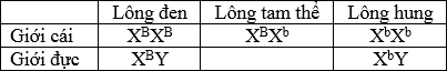 Ở mèo, gene B qui định màu lông đen nằm trên NST giới tính X, gene b qui định màu lông hung, mèo