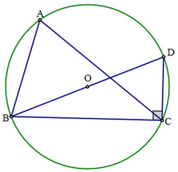 Sử dụng góc nội tiếp chắn nửa đường tròn và tỉ số lượng giác của góc nhọn trong tam giác vuông.