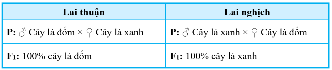 Năm 1909, Coren (Correns) đã tiến hành phép lai thuận nghịch trên cây hoa phấn (Mirabilis jalapa) và thu được kết quả như sau: