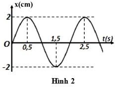 Cho đồ thị của một dao động điều hòa như hình 2. Chu kì dao động của vật