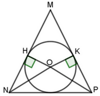 Cho tam giác MNP. Gọi (O) là đường tròn nội tiếp tam giác MNP. Biết (O) tiếp xúc với hai cạnh MN