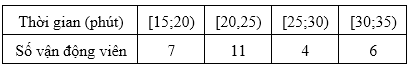 Thời gian hoàn thành giải chạy của các vận động viên được cho như bảng sau: