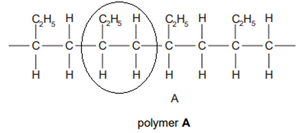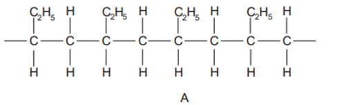 Hình dưới biểu diễn cấu trúc một đoạn mạch polymer A, được tạo thành từ phản ứng trùng hợp một alkene.