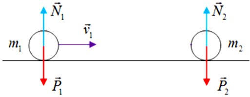 Một vật có khối lượng \({m_1} = 1kg\) chuyển động với vận tốc \(5m/s\) đến va chạm