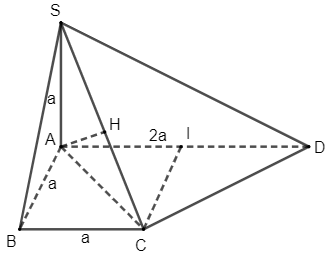 Cho hình chóp S. ABCD có đáy ABCD là hình thang vuông tại A, B, SA vuông góc với mặt phằng đáy và \(SA = AB = BC = a, AD = 2a\).