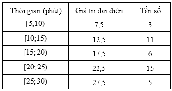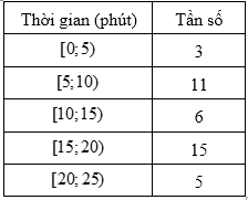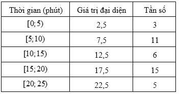 Thời gian trung bình sử dụng ChatGPT trên một ngày của một nhóm học sinh được ghi lại trong bảng dưới đây.