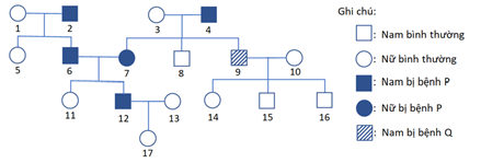 Phả hệ sau mô tả sự di truyền bệnh P và bệnh Q ở người. Biết rằng mỗi bệnh do