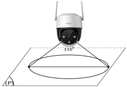 Biết góc quan sát ngang của một camera là \(116^\circ \). Trong không gian \(Oxyz\),