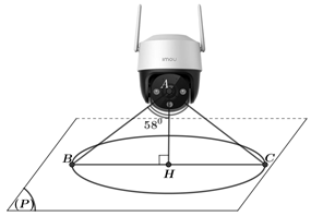 Biết góc quan sát ngang của một camera là \(116^\circ \). Trong không gian \(Oxyz\), camera được đặt tại điểm \(A\left( {2;1;5} \right)\) và chiếu thẳng về phía mặt phẳng \(\left( P \right):2x - y - 2z + 13 = 0\). Hỏi vùng quan sát được trên mặt phẳng \(\left( P \right)\) của camera là hình tròn có đường kính bằng bao nhiêu? (làm tròn kết quả đến chữ số hàng chục)