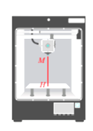 Phần mềm điều khiển máy in 3D cho biết đầu in phun của máy đang đặt tại điểm