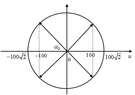 Điện áp hai đầu bóng đèn có biểu thức \(u = 100\sqrt 2 \cos 100\pi t\left( V
