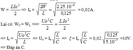 cung cấp cho mạch một năng lượng 25μJ thì dòng điện tức thời trong mạch là I = I0cos4000t(A). Xác định