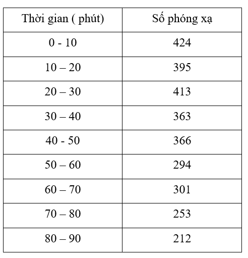 Một máy đếm ghi lại sự phân rã phóng xạ từ một nguồn phóng xạ đưa ra các số đếm sau trong các khoảng thời gian bằng nhau.