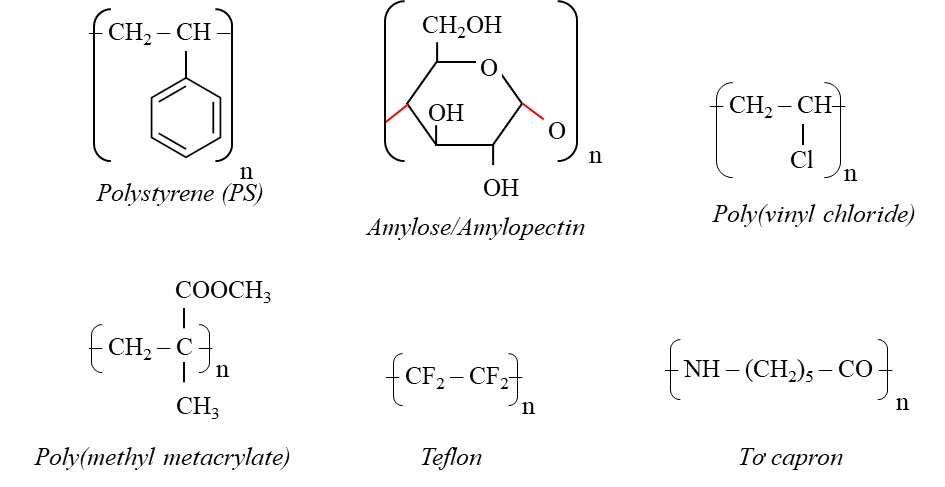 Trong các polymer: polystyrene, amylose, amylopectin, poly(vinyl chloride), tơ capron, poly(methyl metacrylate) và