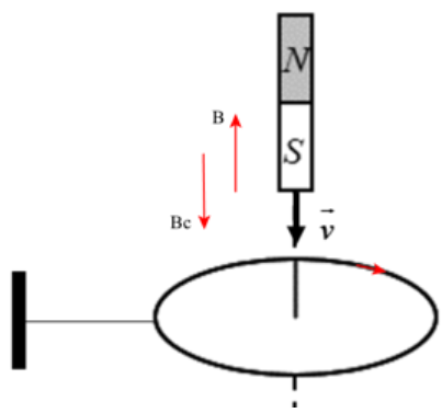 Khi cho nam châm rơi qua vòng dây như hình bên. Nhận xét nào sau đây là đúng về chiều dòng điện cảm ứng?