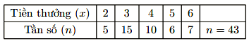 Tiền thưởng (triệu đồng) cho cán bộ và nhân viên trong công ty được trình bày trong bảng tần số sau đây