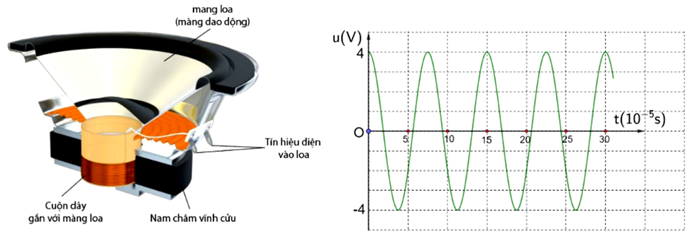 | d) Nếu nối hai điểm nối tín hiệu vào loa với điện áp biểu diễn như Hình 18.5 thì tần số âm loa phát ra là 13333 Hz . |