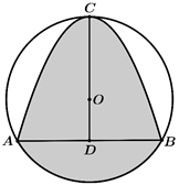 Một hoa văn hình tròn tâm \(O\), ngoại tiếp tam giác đều \(ABC\) có cạnh\(AB = 4\sqrt 3 \,{\rm{cm}}\). Đường cong qua ba điểm: \(A,\,B,\,C\) là một phần của parabol. Diện tích phần gạch chéo là? Kết quả làm tròn đến hàng phần mười.