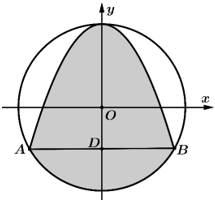 Gắn trục toạ độ Oxy, xác định phương trình parabol và phương trình đường tròn.