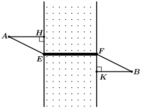 Hai thành phố \(A\) và \(B\) cách nhau một con sông. Người ta xây dựng một cây cầu \(EF\) bắc qua sông biết rằng thành phố \(A\) cách con sông một khoảng là \(4\)km và thành phố \(B\) cách con sông một khoảng là \(6\)km (hình vẽ), biết \(HE + KF = 20\)km và độ dài \(EF\) không đổi. Hỏi xây cây cầu cách thành phố \(A\) là bao nhiêu kilomet để đường đi từ thành phố A đến thành phố B là ngắn nhất (đi theo đường \(AEFB\))? Kết quả làm tròn đến phần trăm.